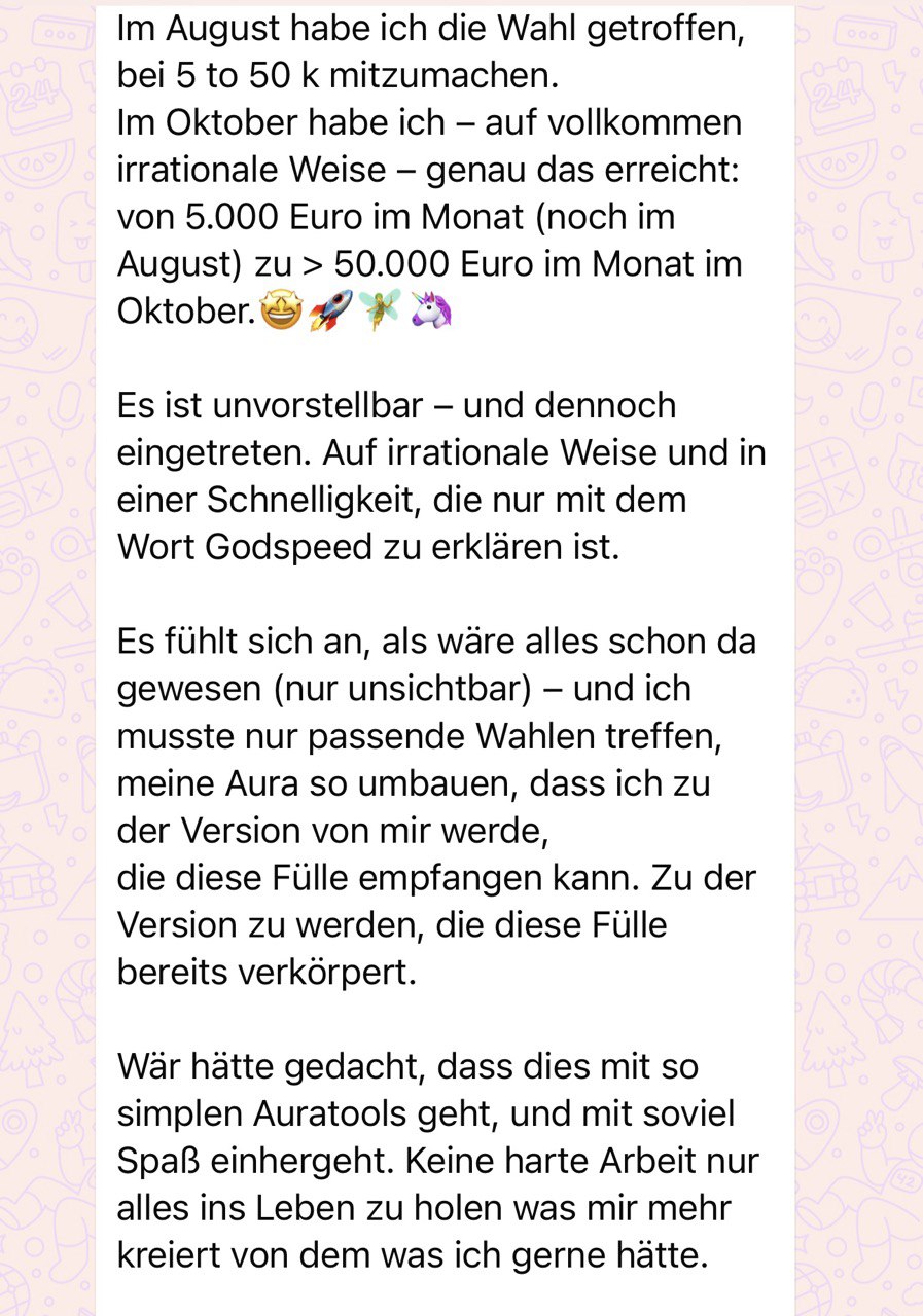 Und du lernst die magischen Aura Tools, die du im Alltag sofort anwenden kannst – ohne Meditieren, ohne Blockaden lösen, ohne komplizierte Rituale.
